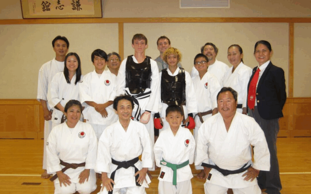 娘が小学生の時、休憩の時間に学校のブランコで遊んでいた時に、下の学年の生徒から「ちび、どけ!」と砂をけられたと嘆いていました。この話を聞いて、いつも傍にいられない身としては、護身のために娘に早速武術を習わせようと思い、すぐに武道教室を探しました。たまたまハワイ日本文化センターの道場で空手教室を開いていた「アイランド・気」を見学した時に、ひさえ先生から親子で空手教室に参加することを積極的に勧められ、そのまま家族ぐるみで空手を始めました。