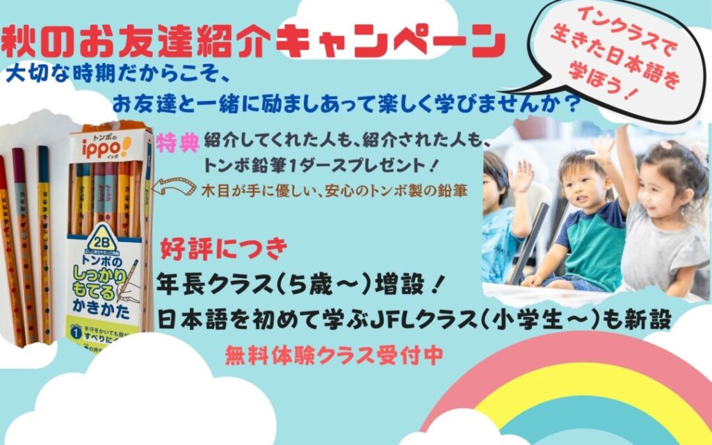 こども学習教室では、2021年9月20(月)より、秋のお友達紹介キャンペーンを行っています。