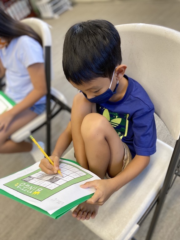 そして、お楽しみ会メインイベントでもある『ひらがな・ビンゴ大会』『ビンゴ』って何?と質問があり、少し練習をしておけばよかったかなと反省しつつも皆とても必死でひらがなを探してくれていました。「あった」や「ないなぁ」という言葉が飛び交っていました。「リーチ」や「ビンゴ」もきけてほっとしました。