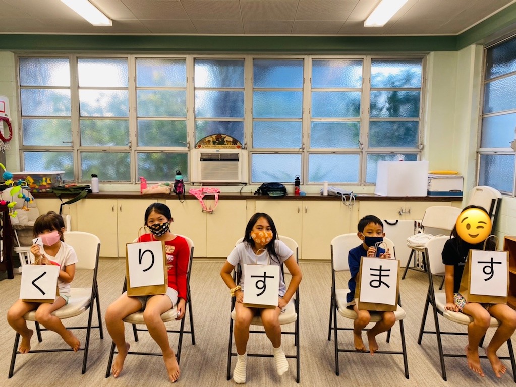 1時間目は通常通りの授業を行いました。今月はひらがなの総復習に当てています。日本語の音韻の一瞬である拗音(ようおん)を学んでいます。拗音とは「きょうしつ(教室)」「しゅうじ(習字)」「きょうりゅう」など、二字のかなで表されている音のことです。この場合だと「きょ」「しゅ」「りゅ」が拗音にあたります。