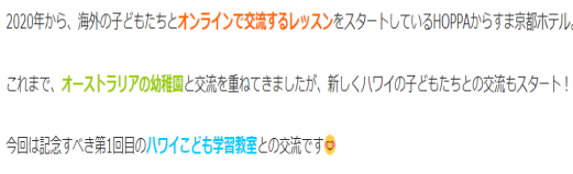 昨年の11月にスタートした、京進グループの保育園”HOPPA”とのリモート交流会では、今年も子ども同士の国を超えた交流が行われます。