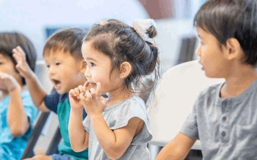 【年長クラス】日本語の会話やひらがな・カタカナ、日本語での数字の概念などを覚えていく年長クラスは、元気の良い子どもたちが歌ったり踊ったりと、楽しく学んでいます。8月より木曜日クラスが増設され、水・木曜日の週2回授業が行われます。