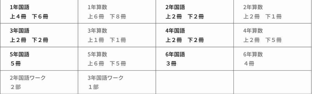 2020年度の改定前の教科書を、下記の通り、無料でお譲りいたします。昨年の復習をおこなったり、次の学年の予習を兼ねて本読みや計算練習をするなど、お子様の家庭学習にお役立ていただけたら、嬉しく思っております。また、生徒さんの兄弟姉妹やお友達で、教科書が必要な方がいましたら、ぜひお持ち帰りください。