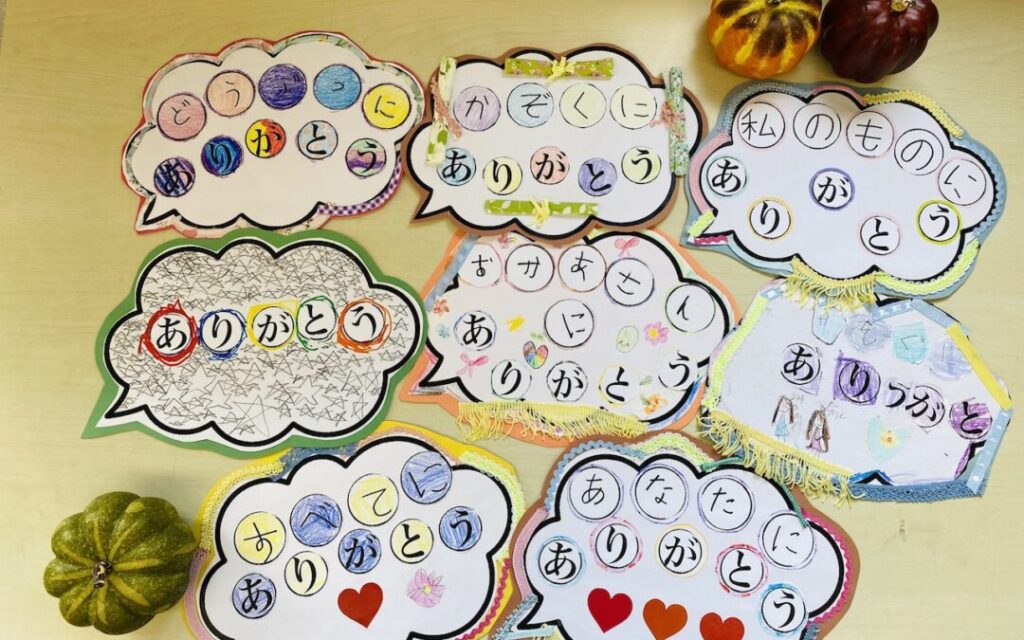 そこで、今回私の受け持つJFLクラスでは、先月のトピックでもありました『わたし と かぞく』で学んだ事を生かしながら生徒さんはご家族へ日頃の感謝の気持ちを日本語で表してもらうことにしました。絵を描いたり、折り紙を使ったりと彼らなりの表現でサンキュー・カードにしてもらいました。感謝の気持ちを表す事で親子のコミュニケーションがより豊かになれればと思います。