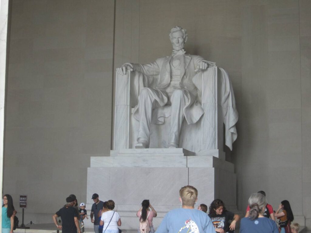 本日の目的地は、リンカーン記念堂です。米国の「奈良の大仏」と思っていましたが、リンカーンの石像は意外と小さかったですね。ここから、ワシントン記念塔、国会議事堂などを直線で結んだ公園が目の前に広がり、全てが一望できるようになっていました。折角なので、議事堂まで歩くことにしました。但し、日差しが強く、湿度の高い蒸し暑い空気の中で二重マスクをして、数年振りに聞く蝉の大合唱がとても悩ましく、久しぶりにハワイで経験することのない夏を肌で感じました。日陰のベンチを見つけては休息を取りながら、噴水のある第二次世界大戦記念碑、ワシントン記念塔などを見て国会議事堂近くまで歩きました。国会議事堂は現在見学できないとのことだったので、ここでワシントンD.C.ウォークは終了です。なお、後日、巡回バスを利用して、車窓からこの地域の記念碑を外苑から眺めました。暑い中十分歩いたので、本日はこれまでにしてホテルに帰りました。