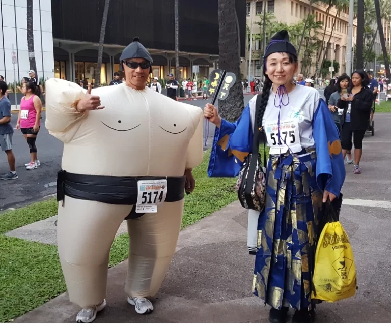 グレート・アロハ・ランには、過去20年近く毎年参加しています。昨年と今年はバーチャルでの開催となりましたが、体力維持の目安としての健康バロメーターとして大いに活用しています。実際には、アロハ・タワーからアロハ・スタジアムまで走るのですが、殆どの人は歩いてゴールを目指します。総勢約2万5000人による8.15マイル(約12キロ)の早朝涼しい時に出発して午前中に終了する大行進といったところです。沿道には、給水所ボランティアや演奏楽団などが賑やかに参加者を応援し、めったに通行できない高速道路で周囲の景色を楽しみながら、祭り気分を味わって大勢で初詣をするという感じです。ここ数年、日本からの友人夫婦がコスチュームを身に着けて参加して仲間を喜ばせています。友人夫婦は、今では毎年この行事のためにコスチュームを考えて参加することを楽しみにしているとのことです。なお、完走すると記念Tシャツとメダルが貰えるので、良い思い出の記念品も手に入ります。乳母車を押して、家族揃っての参加など老若男女幅広い人々が参加しているので、是時挑戦してみてください。残念ながら今年はバーチャルですが、2月18日(金)~21日(月)の期間中に達成した距離をその都度オンラインで自己申告できるグレート・アロハ・ランの案内・申し込みはこちら。